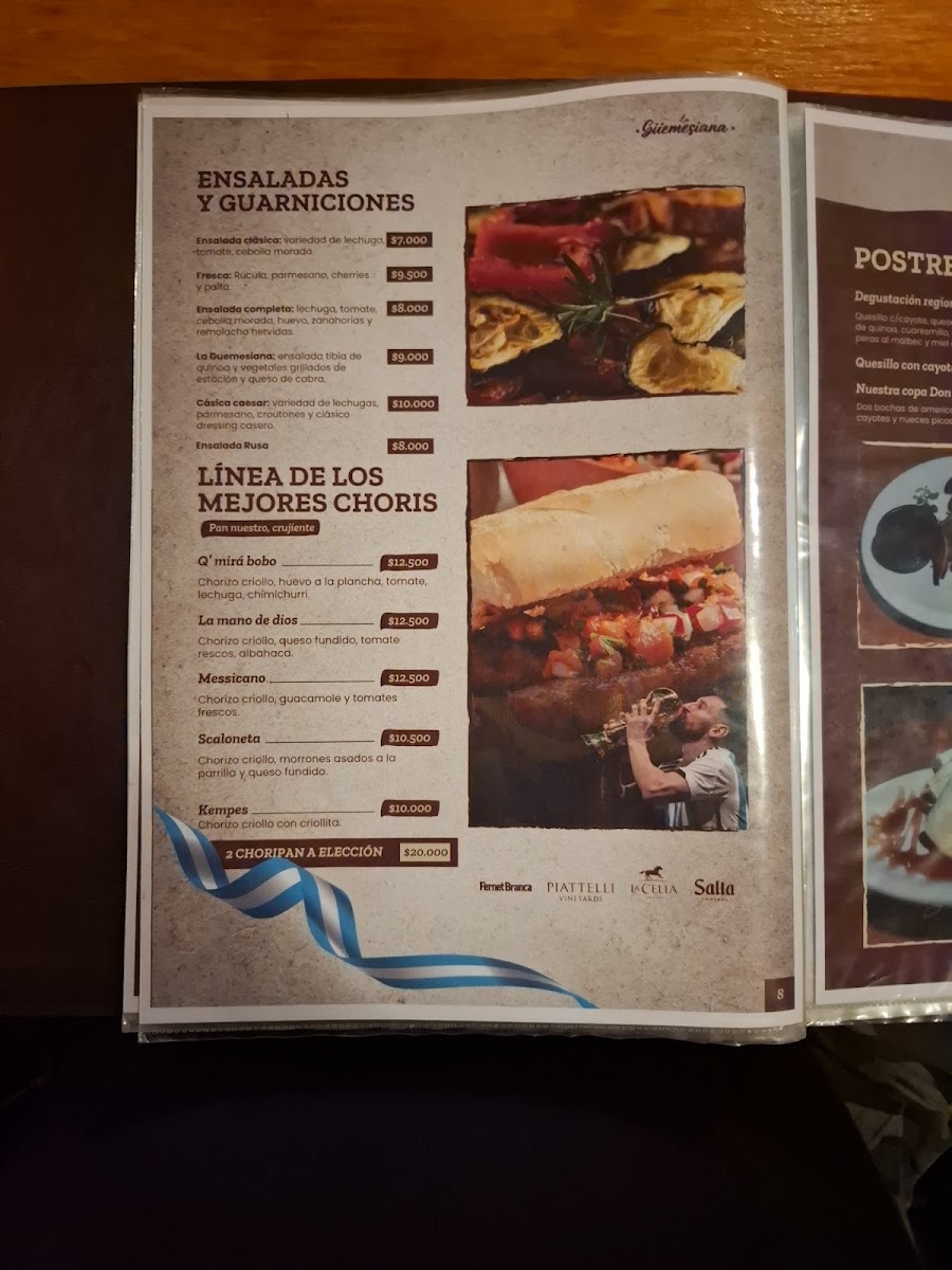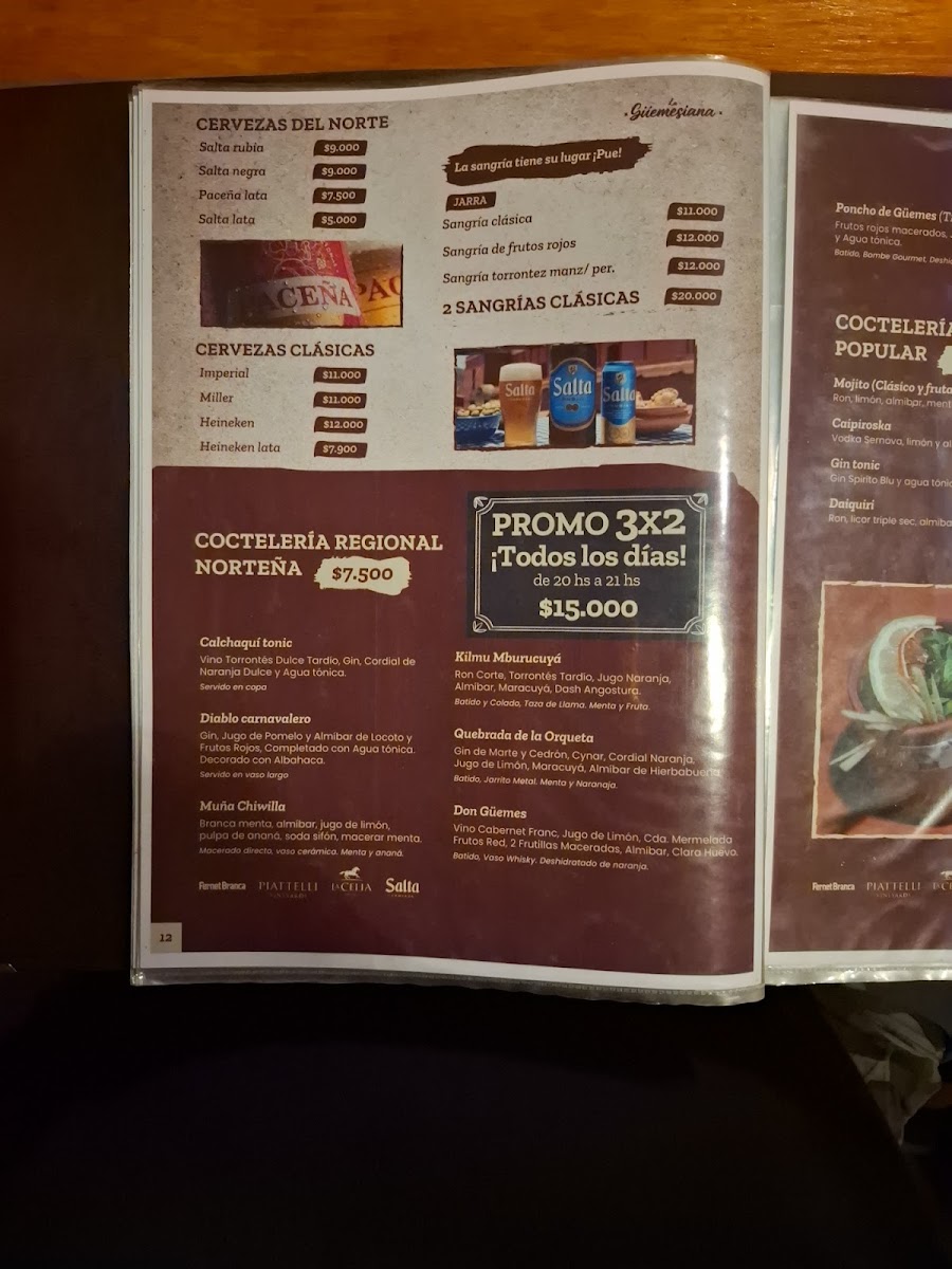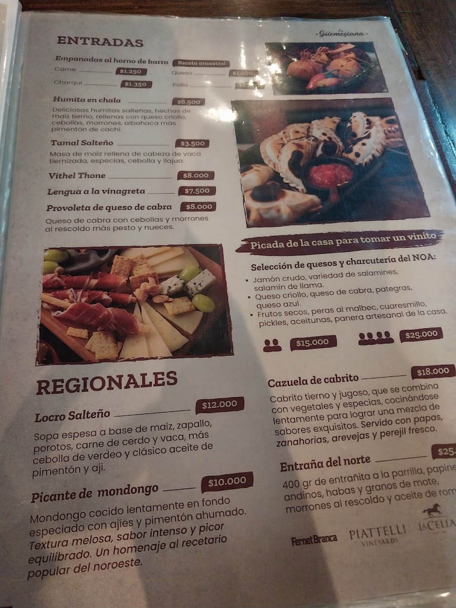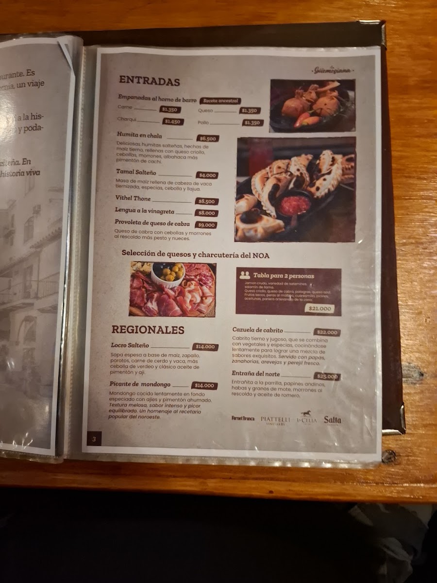 The menu at La Güemesiana on Gral. Martin Güemes 236 reads like a confident celebration of Salta’s regional identity, balancing tradition with generous, crowd-pleasing execution. Starters set the tone with empanadas salteñas, crisp on the outside and juicy within, alongside comforting classics like humita and tamales that foreground corn, spice, and slow preparation. The heart of the menu leans into rustic depth: locro arrives hearty and layered, while mains such as milanesa and asado deliver familiar Argentine satisfaction through straightforward technique and quality ingredients. Regional specialties, including cabrito, underscore a commitment to local flavors without overcomplication. Portions feel intentionally ample, reinforcing the restaurant’s homestyle ethos rather than fine-dining restraint. Desserts close the experience with reliable sweetness-flan with dulce de leche providing a creamy, nostalgic finish that mirrors the menu’s overall philosophy. Taken together, the offerings feel cohesive and sincere, prioritizing authenticity, warmth, and consistency over novelty, making the menu a clear reflection of Salta’s culinary heritage presented with confidence and comfort.